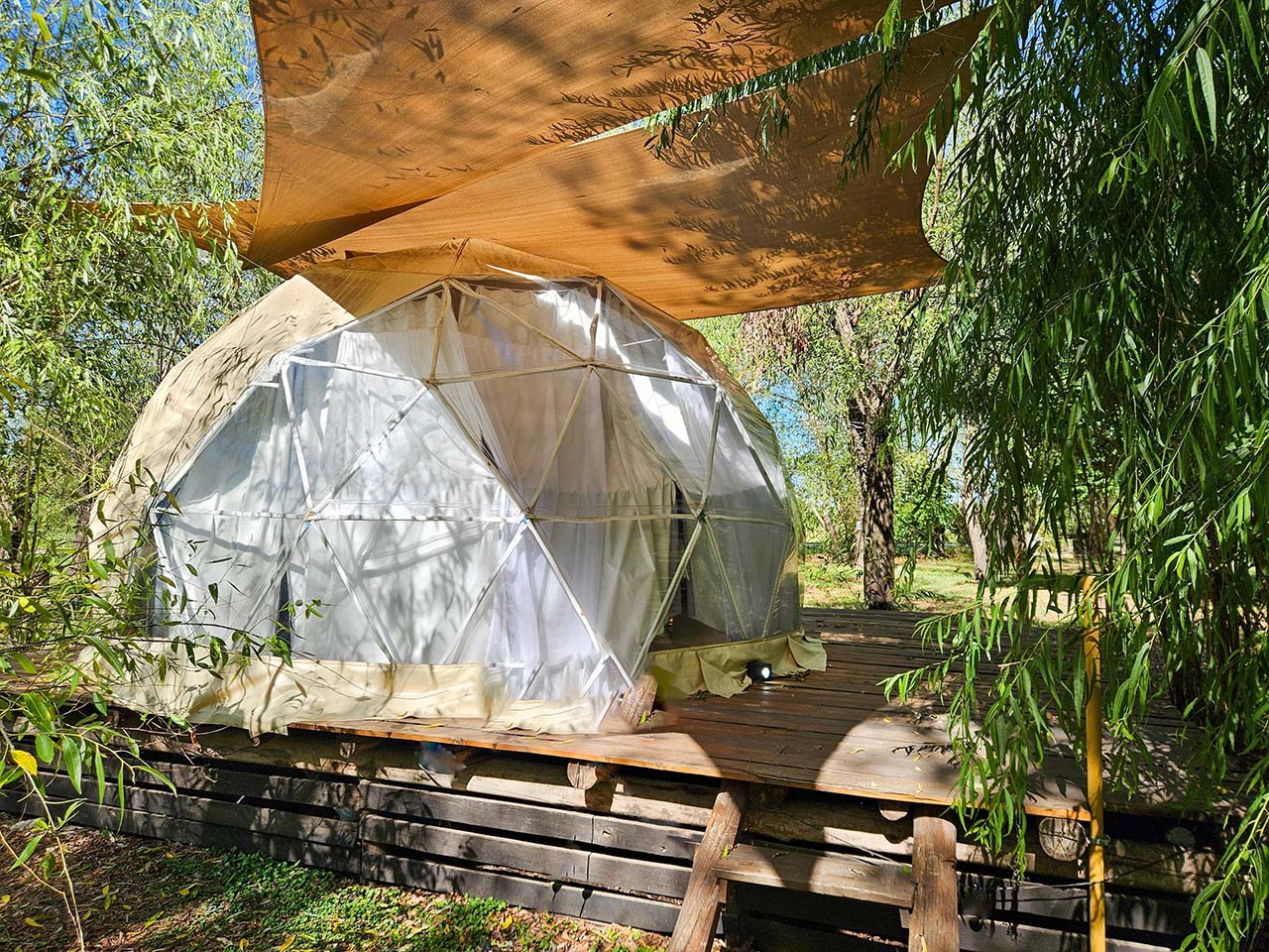 Glamping frente al rio, ofrecen domos para dos, tres y cuatro personas.